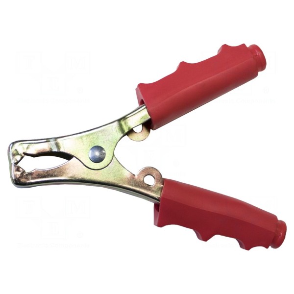 Styki zacisku wykonane zostały ze stali, co zapewnia wytrzymałość mechaniczną podczas użytkowania. Konstrukcja elementu przewiduje montaż przewodów poprzez lutowanie. Całkowita długość zacisku wynosi 112mm, a korpus wykończony jest w kolorze czerwonym.
