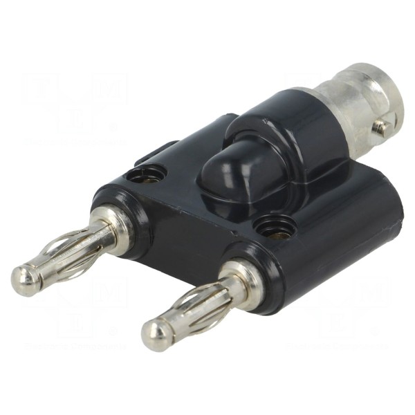 Budowa złącza obejmuje dwa gniazda bananowe 4mm oraz gniazdo BNC. Materiał styku wykonany jest z miedzi berylowej.