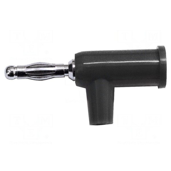 Wtyk bananowy 4mm to element przeznaczony do połączeń laboratoryjnych, wykonany z miedzi berylowej z niklowaną powierzchnią styku. Konstrukcja złącza obejmuje gniazdo osiowe oraz gniazdo poprzeczne, co umożliwia rozbudowę układów pomiarowych. Izolację zewnętrzną wykonano z polipropylenu w kolorze czarnym.