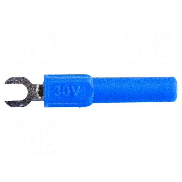 Złącze widełkowe, banan 4mm, prąd znamionowy 36A, niebieskie