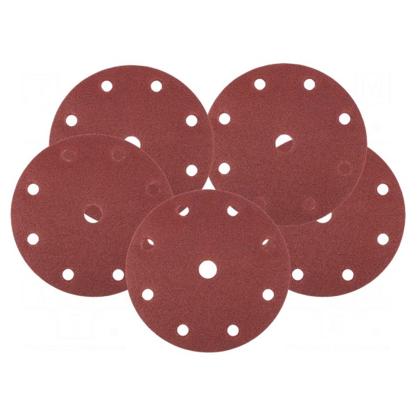 Dysk szlifierski NEO TOOLS o średnicy 150mm posiada ziarnistość 60. Produkt mocowany jest za pomocą rzepu i wyposażony w otwory odpylające.