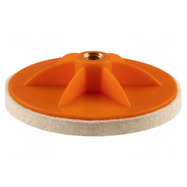 Filcowa nakładka polerska przeznaczona jest do prac wykończeniowych z użyciem elektronarzędzi. Element posiada gwintowane gniazdo montażowe o rozmiarze M14, co umożliwia bezpośrednie mocowanie na standardowych szlifierkach kątowych.