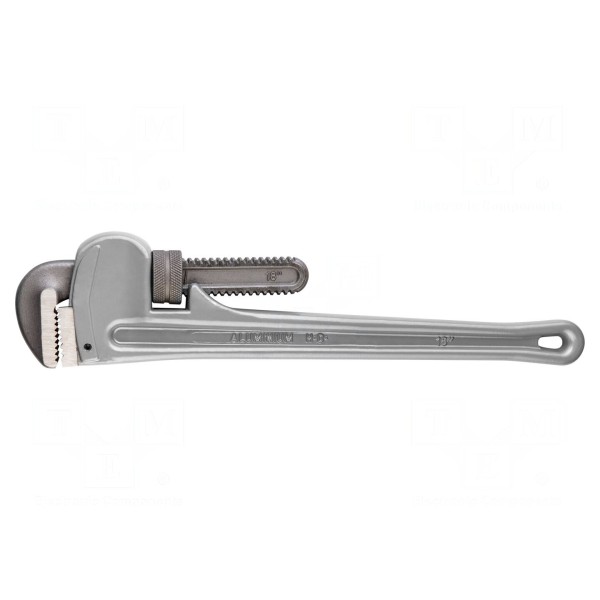 Klucz nastawny typu Stillson o długości całkowitej 450 mm przeznaczony jest do chwytania rur. Narzędzie umożliwia pracę z elementami o średnicy do 1 3/4 cala.