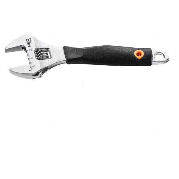 Klucz nastawny wykonany ze stali chromowo-wanadowej, zapewniającej wytrzymałość narzędzia. Urządzenie pozwala na regulację rozwarcia szczęk do maksymalnej szerokości 23 mm.