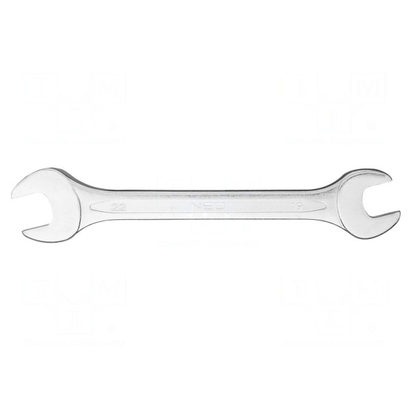 Klucz płaski dwustronny o rozmiarach końcówek 19 mm oraz 22 mm. Narzędzie przeznaczone do obsługi połączeń gwintowych o podanych wymiarach.