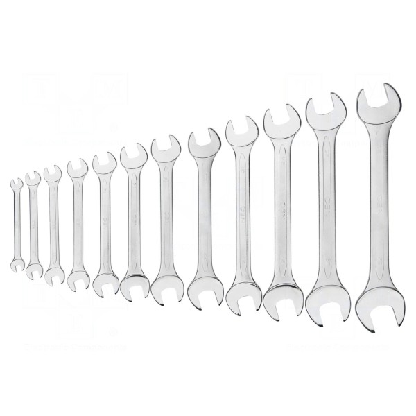 Zestaw 12 dwustronnych kluczy płaskich ze stali chromowo-wanadowej