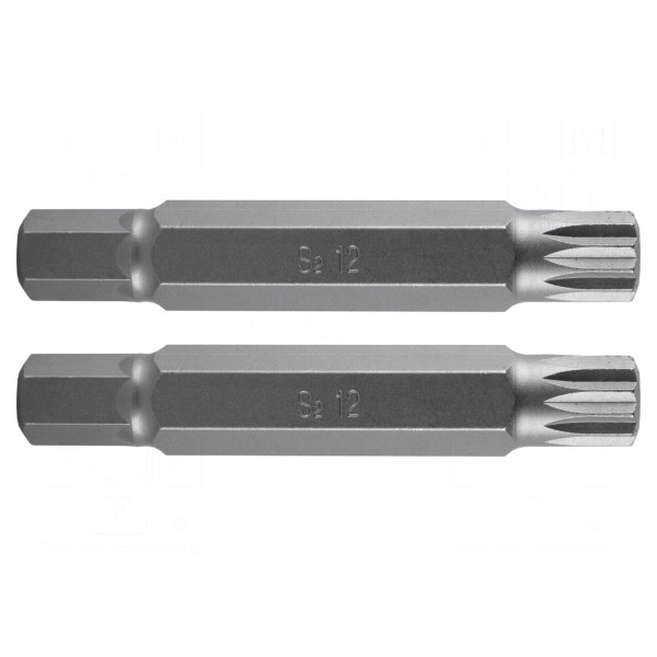 Końcówka wkrętakowa typu spline 12-kątnego przeznaczona jest do współpracy z napędami o rozmiarze gniazda 3/8". Element charakteryzuje się rozmiarem grota XZN M12 oraz długością całkowitą wynoszącą 75 mm.