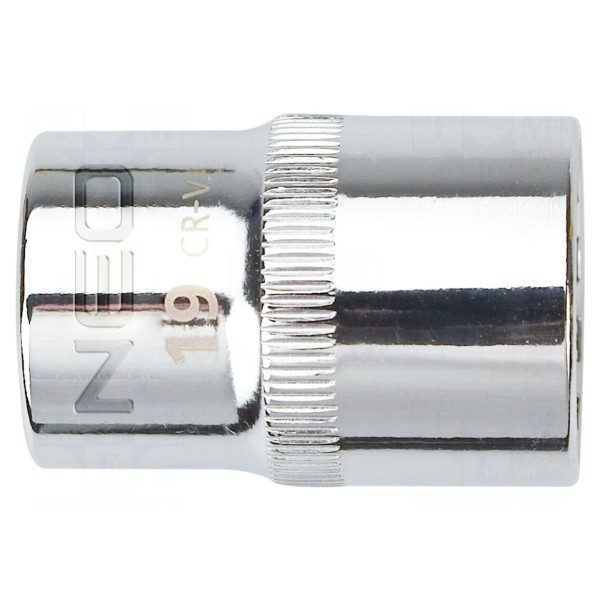 Element wykonany jest ze stali chromowo-wanadowej, zapewniającej trwałość w warunkach eksploatacji mechanicznej. Całkowita długość nasadki wynosi 38 mm. Produkt jest zgodny z wymaganiami normy DIN 3124.