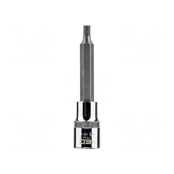 Nasadka imbusowa o rozmiarze HEX 5 mm przeznaczona jest do współpracy z narzędziami posiadającymi gniazdo 1/2". Całkowita długość elementu wynosi 100 mm, co umożliwia pracę w miejscach o utrudnionym dostępie.