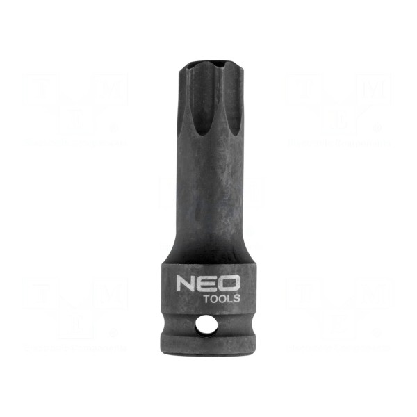 Nasadka udarowa NEO TOOLS przeznaczona jest do pracy z elementami złącznymi typu Torx w rozmiarze TX80. Narzędzie zostało wyposażone w gniazdo montażowe o rozmiarze 1/2", co zapewnia kompatybilność z popularnymi kluczami udarowymi oraz narzędziami ręcznymi o tym samym standardzie mocowania.