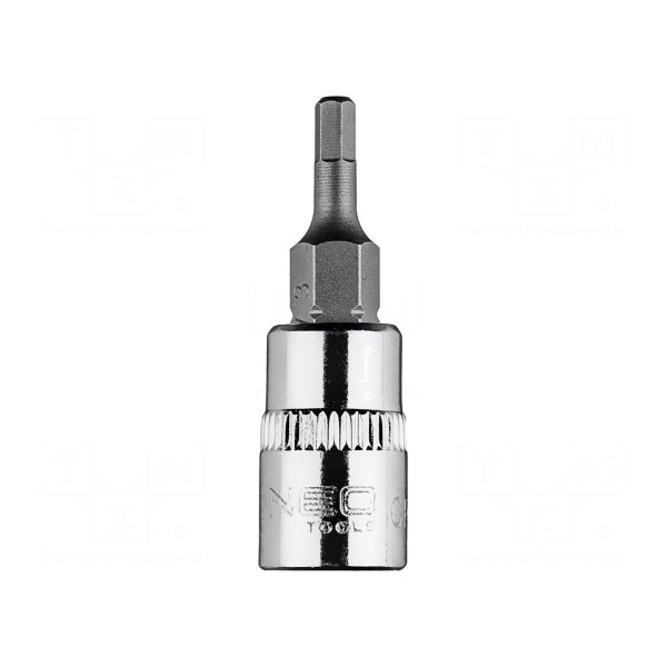 Nasadka imbusowa typu nasadowego została wyposażona w końcówkę HEX o rozmiarze 3 mm. Produkt posiada gniazdo uchwytu w standardzie 1/4".