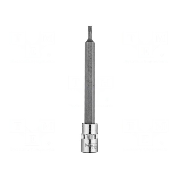 Nasadka typu Torx w rozmiarze TX10 przeznaczona jest do współpracy z narzędziami wyposażonymi w gniazdo 1/4". Element charakteryzuje się wydłużoną konstrukcją, osiągającą 87 mm długości, co umożliwia dostęp do śrub osadzonych w głębokich gniazdach.