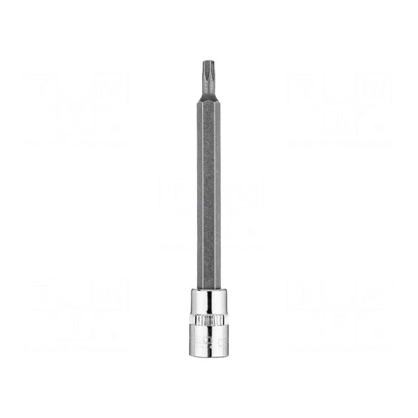 Element został wykonany ze stali chromowo-molibdenowej, zapewniającej parametry użytkowe materiału. Narzędzie dedykowane jest do prac mechanicznych wymagających precyzyjnego przeniesienia momentu obrotowego na śruby z gniazdem typu Torx.