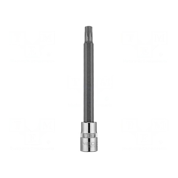 Narzędzie wykonano ze stali chromowo-molibdenowej. Długa wersja nasadki zapewnia stabilną pracę podczas obsługi elementów złącznych typu Torx.