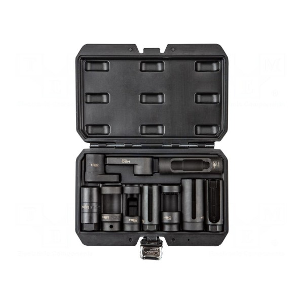 Nasadka NEO TOOLS to zestaw 10 elementów przeznaczonych do prac serwisowych przy sondach lambda oraz wtryskiwaczach. Narzędzia charakteryzują się konstrukcją 6-kątną, 12-kątną oraz nasadową, co umożliwia dopasowanie do zróżnicowanych elementów montażowych w układach silnikowych.