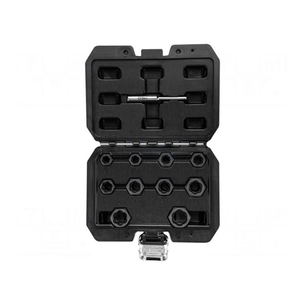 Zestaw zawiera nasadki przeznaczone do pracy z kluczami udarowymi, dedykowane do odkręcania uszkodzonych śrub. Komplet składa się z 11 elementów przystosowanych do montażu na uchwycie o rozmiarze 1/2".