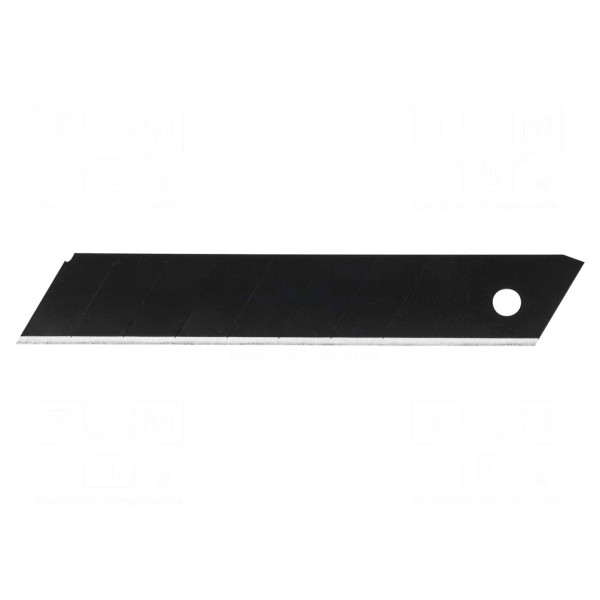 Ostrze przeznaczone do noży o szerokości prowadnicy 18 mm. Element wykonany został z uwzględnieniem parametrów technicznych dla narzędzi tnących.