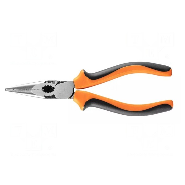 Szczypce uniwersalne o długości 160 mm przeznaczone są do chwytania oraz cięcia materiałów. Narzędzie charakteryzuje się prostą, półokrągłą i wydłużoną konstrukcją szczęk, co ułatwia pracę w ograniczonych przestrzeniach.