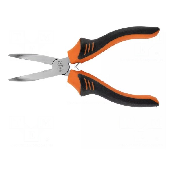 Szczypce NEO TOOLS o długości 180 mm to narzędzie przeznaczone do prac chwytających oraz cięcia. Konstrukcja łączy cechy szczypiec półokrągłych, wydłużonych i odgiętych, co ułatwia dostęp do elementów w trudno dostępnych miejscach.