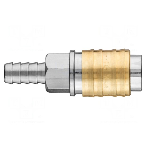 Szybkozłącze pneumatyczne o średnicy przyłącza 10 mm przeznaczone do pracy z kompresorami. Element został wykonany z mosiądzu, co zapewnia trwałość podczas eksploatacji w instalacjach pneumatycznych.