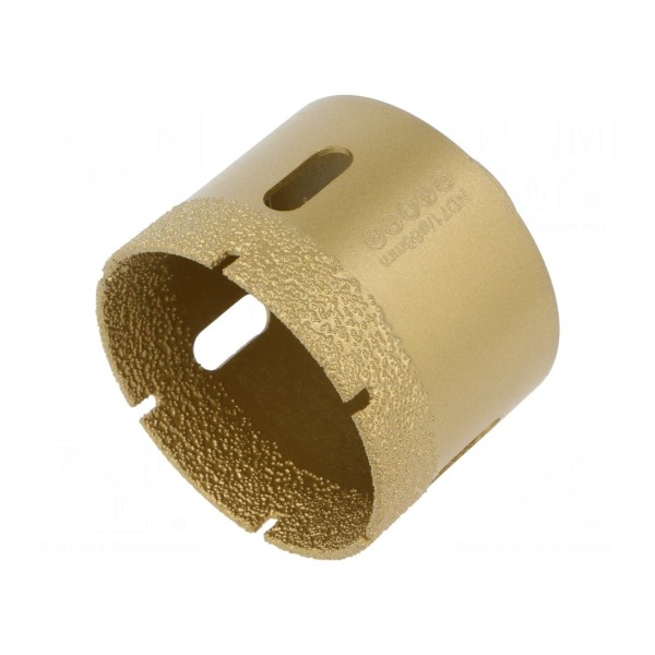 Otwornica diamentowa o średnicy 68 mm przeznaczona jest do wykonywania otworów w twardych materiałach ceramicznych. Produkt posiada gwint montażowy M14, co umożliwia bezpośrednie osadzenie na wrzecionie szlifierki kątowej.