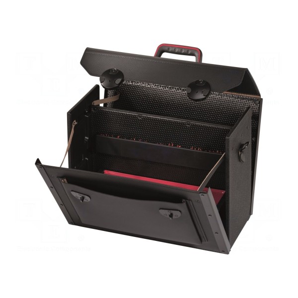 Konstrukcja umożliwia wygodne przenoszenie narzędzi w warunkach warsztatowych i serwisowych. Użyte materiały oraz wymiary wewnętrzne zapewniają miejsce na przechowywanie standardowych akcesoriów technicznych.