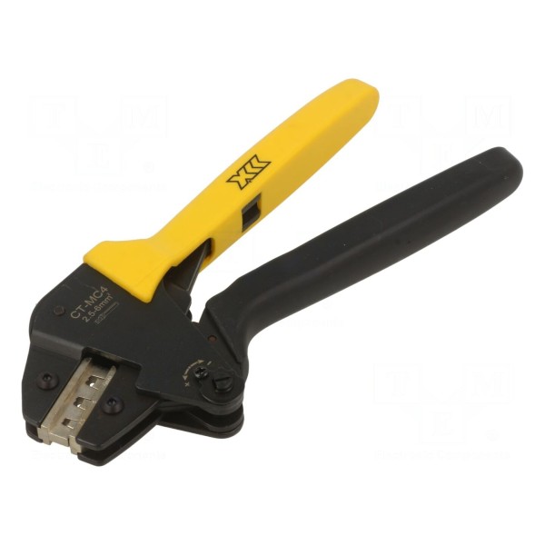 Narzędzie do zaciskania przeznaczone jest do obróbki końcówek w instalacjach fotowoltaicznych. Obsługuje przewody o przekroju od 2,5mm² do 6mm².
