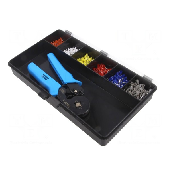 Zestaw narzędzi przeznaczony jest do zaciskania konektorów oraz końcówek izolowanych. Obsługiwany przekrój przewodu wynosi od 0,25 do 6mm².