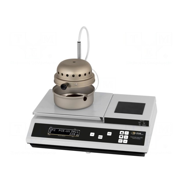 Miernik wielofunkcyjny PCE Instruments UX3011Q umożliwia precyzyjny pomiar masy oraz wilgotności próbek. Urządzenie charakteryzuje się zakresem ważenia od 4 g do 220 g z rozdzielczością pomiaru 0,001 g oraz dokładnością wynoszącą ±0,001 g. Proces suszenia wspierany jest przez grzałkę o mocy 375 W z zakresem regulacji temperatury od 105°C do 360°C, co pozwala na badanie próbek o średnicy od 105 mm do 115 mm.