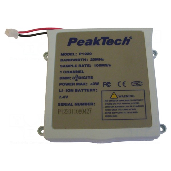 Bateria przeznaczona do urządzeń pomiarowych marki Peaktech. Komponent ten charakteryzuje się wymiarami fizycznymi wynoszącymi 80x75x13mm.
