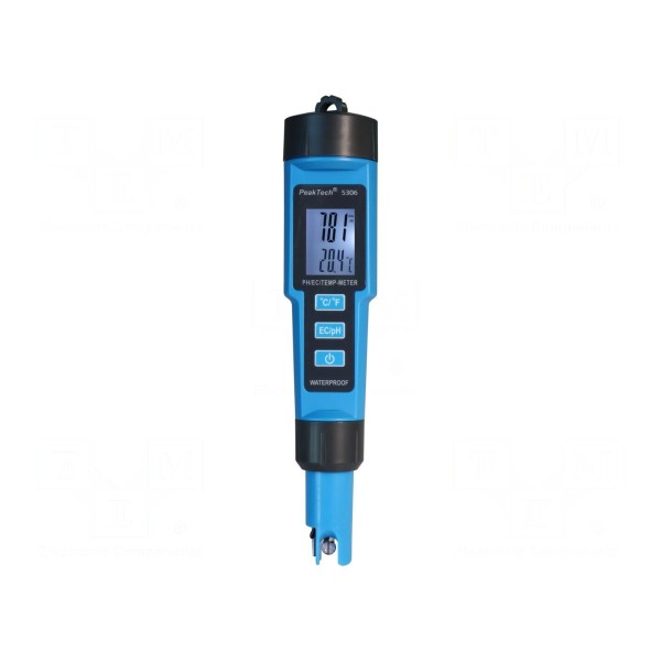 Miernik PEAKTECH P 5306 służy do pomiaru pH, przewodnictwa oraz temperatury. Urządzenie oferuje zakres pomiarowy pH na poziomie 0,00–14,00 pH z rozdzielczością 0,01 pH oraz dokładnością ±0,1 pH. Pomiar temperatury odbywa się w zakresie od 0 do 50°C, przy rozdzielczości 0,1°C oraz dokładności ±1°C.