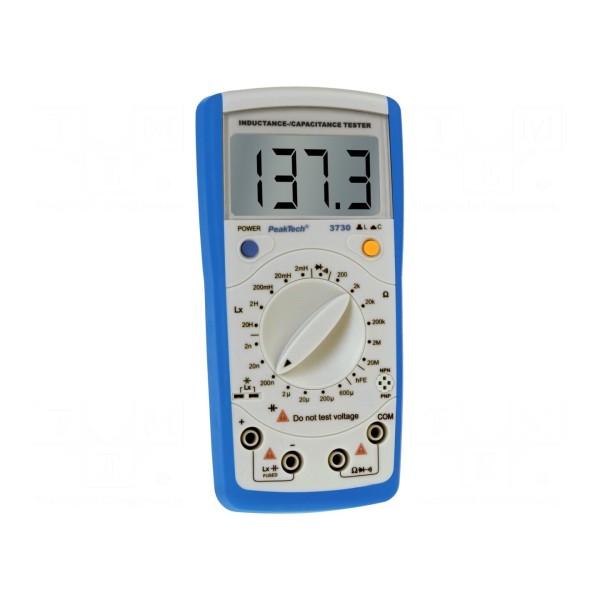 Mostek RLC PeakTech P3730 to przyrząd przeznaczony do pomiaru rezystancji w zakresach od 200Ω do 20MΩ z dokładnością ±(0,8%+1 digit), pojemności od 2nF do 200µF z dokładnością ±(1%+5 digit) oraz indukcyjności od 2mH do 20H z dokładnością ±(2% + 8 digit). Urządzenie wyposażono w wyświetlacz LCD o rozdzielczości 3,5 cyfry (1999). Użytkownik ma możliwość wykonywania testów ciągłości obwodu z sygnalizacją akustyczną poniżej 10Ω oraz testów diod prądem 1mA przy napięciu 5,8V.