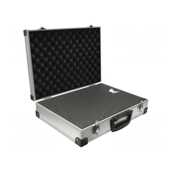 Twarda walizka przeznaczona do przechowywania oraz bezpiecznego transportu urządzeń pomiarowych. Konstrukcja zapewnia ochronę przed czynnikami zewnętrznymi oraz uszkodzeniami mechanicznymi podczas przenoszenia sprzętu.