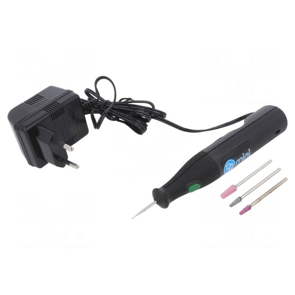 W zestawie: frez precyzyjny, zasilacz, zestaw akcesoriów.