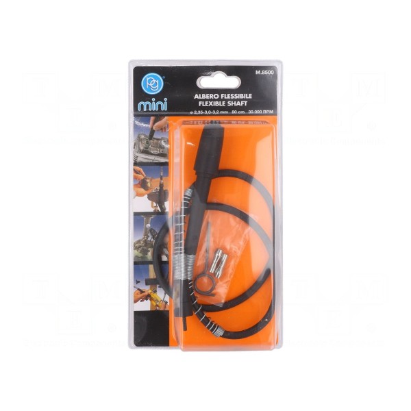W zestawie znajdują się trzy tuleje o średnicach 2,35mm, 3mm oraz 3,2mm, które pozwalają na montaż różnych końcówek narzędziowych. Akcesorium przystosowane jest do użytkowania z wiertarkami w ramach standardowych prac warsztatowych.