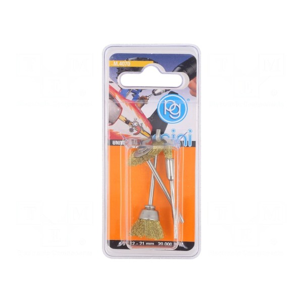 Zestaw zawiera trzy szczotki wykonane z mosiądzu. Akcesoria wyposażone są w trzpień o średnicy 2,35mm.