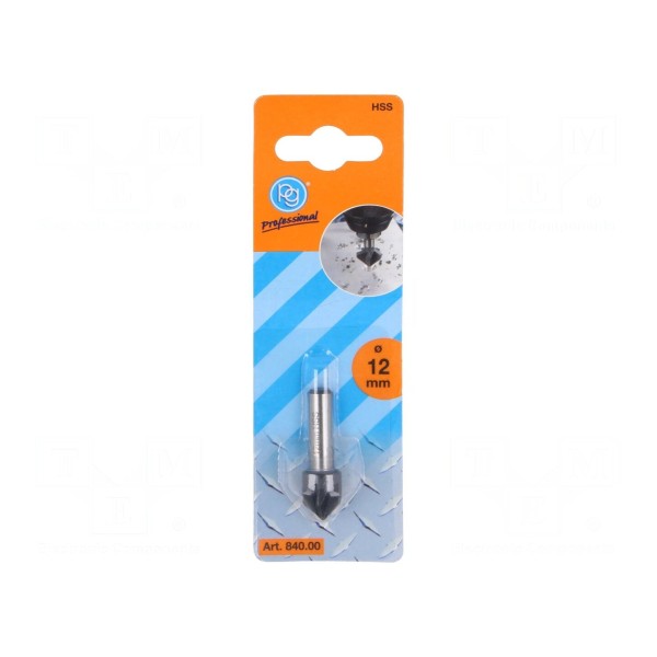 Pogłębiacz przeznaczony do obróbki metalu, wykonany ze stali szybkotnącej HSS. Narzędzie charakteryzuje się średnicą roboczą wynoszącą 12 mm.