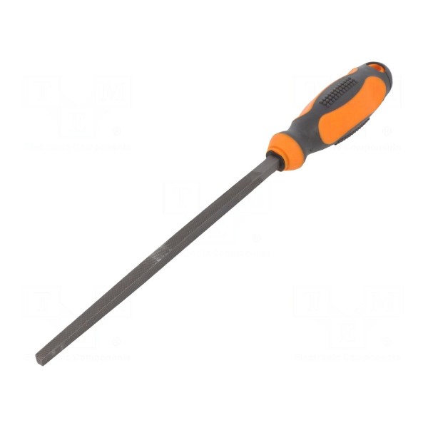 Rękojeść posiada właściwości antypoślizgowe, co ułatwia obsługę w trakcie pracy. Pilnik znajduje zastosowanie podczas prac montażowych, ślusarskich oraz prac wykończeniowych.