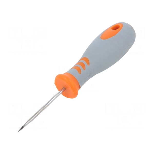 Wkrętak standardowy PG TOOLS PGT001 wyposażony jest w grot płaski w rozmiarze SL 3. Ostrze wykonane zostało ze stali chromowo-wanadowej, co zapewnia wytrzymałość podczas prac montażowych. Końcówka ostrza jest czerniona, co w połączeniu z magnetycznymi właściwościami elementu ułatwia pracę z drobnymi wkrętami.