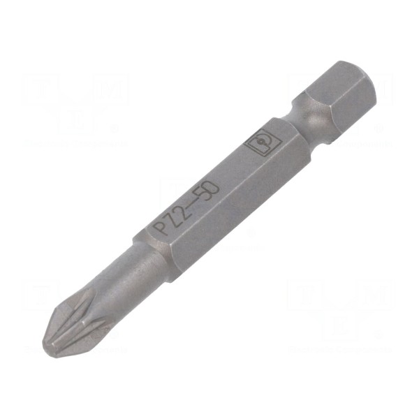 Końcówka wkrętakowa o profilu Pozidriv jest przeznaczona do prac montażowych z użyciem narzędzi wyposażonych w uchwyt 1/4" (E6,3mm). Element charakteryzuje się długością całkowitą wynoszącą 50mm.