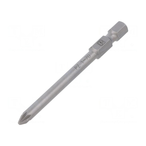 Końcówka wkrętakowa typu Pozidriv charakteryzuje się długością całkowitą wynoszącą 70 mm. Element przeznaczony jest do współpracy z uchwytami o gnieździe 1/4" oraz standardzie mocowania E6,3 mm.