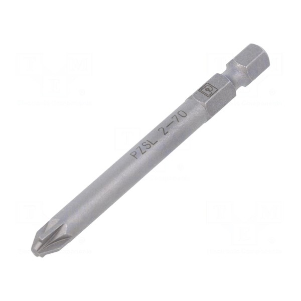 Końcówka wkrętakowa z grotem typu PlusMinus PZ2/SL przeznaczona jest do współpracy z narzędziami ręcznymi oraz elektronarzędziami. Element posiada gniazdo uchwytu o rozmiarze 1/4" oraz rodzaj uchwytu typu E6,3mm.