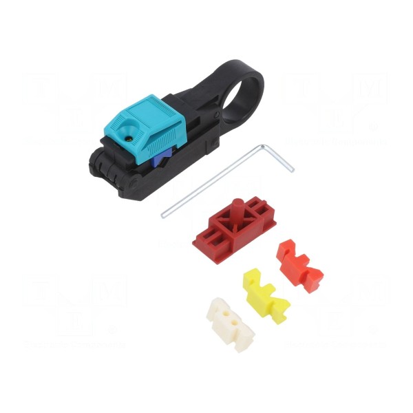 Ściągacz izolacji przeznaczony jest do pracy z przewodami koncentrycznymi oraz okrągłymi. Narzędzie umożliwia precyzyjne przygotowanie końcówki kabla poprzez zdjęcie izolacji na zadaną długość 8,3 mm.