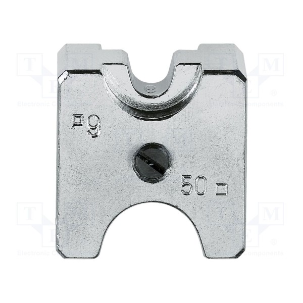 Szczęka dolna przeznaczona jest do montażu w narzędziach przeznaczonych do obróbki końcówek. Element został zaprojektowany do zaciskania końcówek nieizolowanych o przekroju przewodu od 6mm² do 50mm².