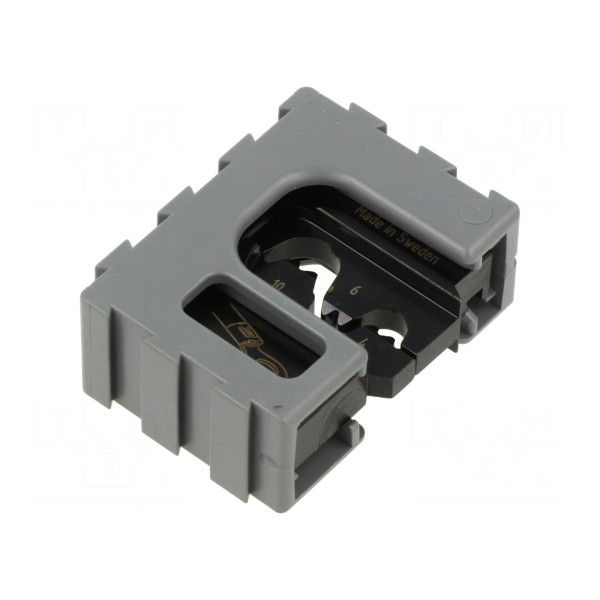 Szczęki do zaciskania przeznaczone są do obróbki konektorów nieizolowanych. Element umożliwia pracę z przewodami o przekroju 4mm², 6mm² oraz 10mm².
