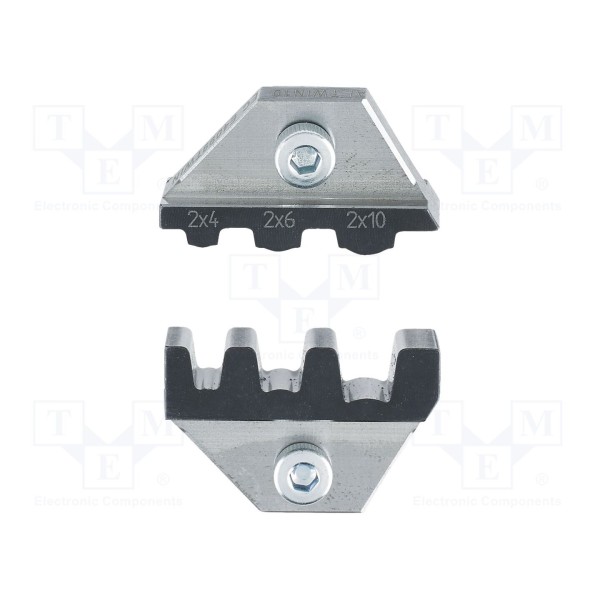 Część zamienna PHOENIX CONTACT 1212262 to szczęki do zaciskania przeznaczone do współpracy z urządzeniem CF 500. Element ten jest dedykowany do obróbki końcówek typu TWIN.