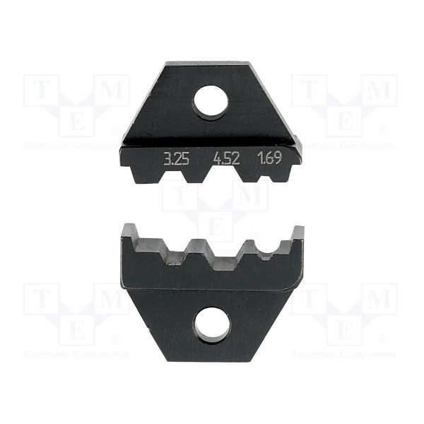 Szczęki do zaciskania przeznaczone są do obróbki przewodów o przekrojach 1,69mm², 3,25mm² oraz 4,52mm². Element ten stanowi część zamienną dedykowaną do określonych narzędzi zaciskowych.