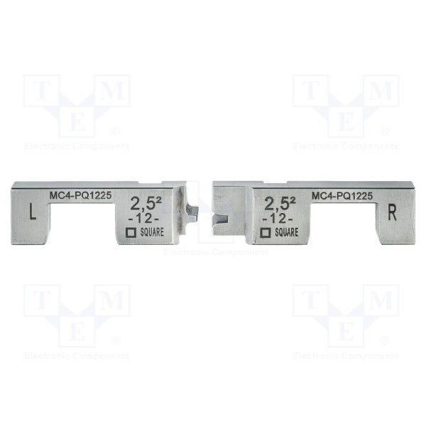 Szczęki do zaciskania przeznaczone są do obróbki końcówek typu tulejka zaciskowa. Element umożliwia uzyskanie kwadratowego profilu zaciskania na przewodach o przekroju 2,5mm².