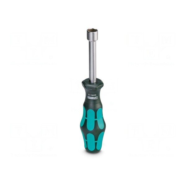 Wkrętak standardowy Phoenix Contact to narzędzie wyposażone w końcówkę typu nasadka 6-kątna o rozmiarze HEX 13mm. Długość ostrza wynosi 80mm, co pozwala na obsługę połączeń śrubowych w miejscach o ograniczonej przestrzeni roboczej.