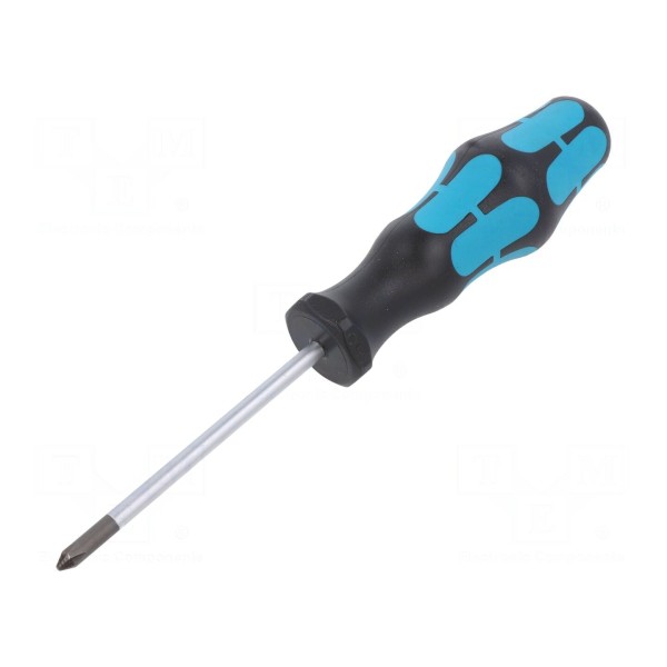 Rękojeść wkrętaka wykonana została w konstrukcji dwukomponentowej, co wpływa na ergonomię chwytu podczas użytkowania. Narzędzie dedykowane jest do pracy z wkrętami z gniazdem krzyżowym typu PH.